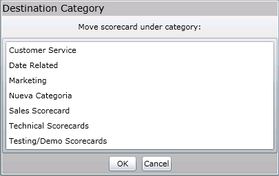 Click OK. The Destination Category window closes and the scorecard moves to the new category.