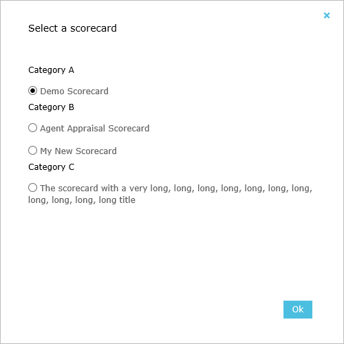 After completing all of the necessary criteria for an evaluation, the evaluation should be started. The evaluation editing tab will display with the name of the user being evaluated and the selected scorecard in the title of the tab. See Editing Evaluations for help on editing, saving and completing the evaluation.