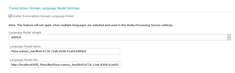 Language Model Name – This field is required and should be the name that is generated by the NTE Domain Language Model training.