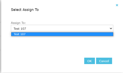 The Select Assign To dialog will be shown. The list of assignees you can choose from is restricted to the users who have Assign Rights on the current workflow state AND they must be a manager of the evaluatee (or an administrator of users). Select the new assignee from the list and click the Ok button.