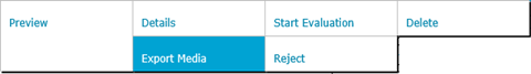 A recording can also be exported from the recording details tab. Open the drop down menu located at the top right of the recording details tab and click the Export Media menu item. Text based recordings (email and chat) may also be exported as a PDF document. Open the drop down menu and click the Export As PDF menu item.