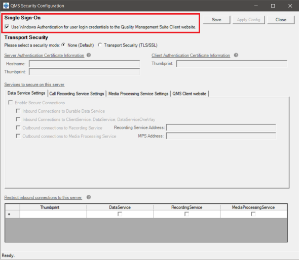 To turn off the identification of Quality Management Client via Windows Authentication, complete the following steps.