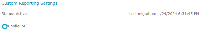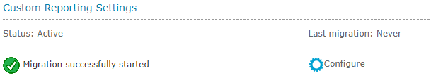 The heading indicates if the feature is enabled, and if not allows an administrator through the process of enabling the Custom Reporting feature.