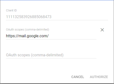 Click Add New, then enter the Client ID of your service account and give access to the https://mail.google.com scope.