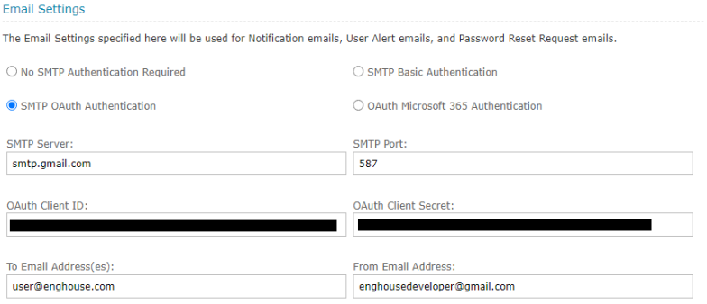 The Gmail/GSuite SMTP servers have been extended to support authorization via the industry-standard OAuth 2.0 protocol (basic authentication is no longer an option). QMS now supports authenticating with a GMail SMTP server using OAuth. Follow these steps to configure your GMail SMTP service for integration with QMS.