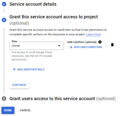 Click Done to create the service account. Make a note of the Client ID of the new account as you will need it later.