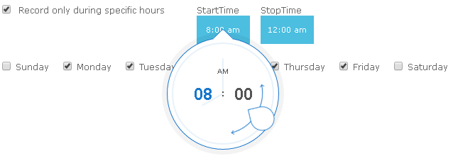 - Select the Record only during specific hours check box.