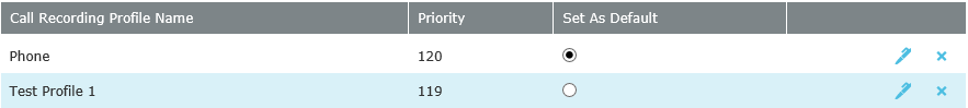 navigation icon and then click the Call Recording Profiles link from the administration sub-menu. The Call Recording Profiles tab displays containing the list of call recording profiles.