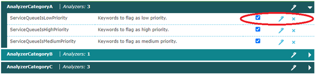 Analyzer Categories can be edited, deleted and expanded by clicking the icons in any category row.