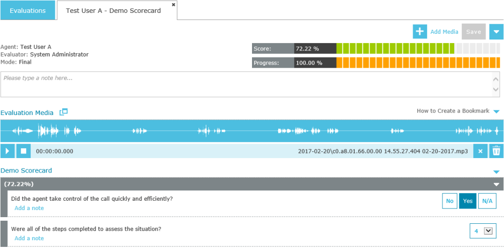 - Add Media - add additional call or screen recordings to the evaluation (optional).