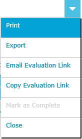 4. Open the drop down menu located at the top right of the evaluation details tab and click the Print menu item.
