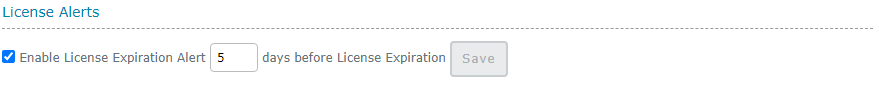 When using a temporary license for an On-premise or tenant version of QMS, License Expiration Alert can be used to send a notification when the license expiration nears. By default, the alert is disabled. To enable, first make sure email is configured and tested. See Email Settings for more information about configuring email. Once email is configured and working, set the number of days to alert before the expiration date.