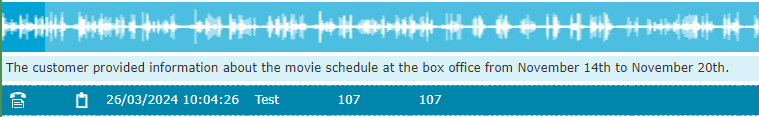 The preview will also show the recording summary if one exists. Recording summaries are available for text and call recordings via the EnghouseAI service. For more information see Call Recording EnghouseAI Settings