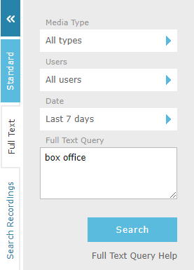 The full text search criteria bar contains all the available search parameters to allow you to perform a full text search of recordings.