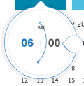 - Range to define start and end dates using the calendar provided, then optionally start and end times using the “time dropper” control. Move the teardrop around the circle to increase/decrease the time. Click on the minute value to switch to incrementing by minutes and vice versa by clicking on the hour value.