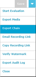 On the recording details tab open the drop down menu located at the top right of the recording details tab and click the Export Chain menu item.