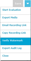 - Open the drop down menu located at the top right of the recording details tab and click the Verify Watermark menu item.