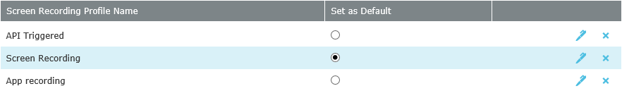 To view screen recording profiles click the navigation icon and then click the Screen Recording Profiles link from the administration sub-menu. The Screen Recording Profiles tab displays containing the list of screen recording profiles.