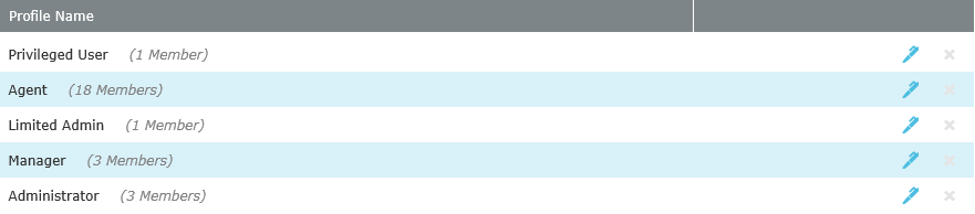 navigation icon and then click the Security Profiles link from the administration sub-menu. The Security Profiles tab displays containing the list of security profiles.
